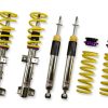 Cutting-edge motorsports technology -or more performance on the road. Like every suspension product developed by KW automotive and manufactured in Germany, the KW Variant 3 Coilover suspension kit also provides a significant improvment on the road. Thanks to the high-quality dampers, springs, and elastomer spring elements, pitching and rolling movements during load changes such as evasive maneuvers, cornering, acceleration, and braking are significantly reduced. The braking distances are also shortened. Thanks to improved support and feedback, drivers not only feel more confident but driving in everyday life is improved. With compression and rebound stage damping, that can be set separately and independently of each other, the damper setup can be customized to your personal driving preferences or vehicle changes such as weight, tire characteristics, or altered vehicle rigidity. True performance optimization is only possible with this unique, patented system. For example, this allows the compression damping force to be increased and get more grip from the tires, to improve cornering behavior and reduce squat without simultaneously altering the rebound stage damping which is optimally matched to the spring rate ? a scenario which results in reduced grip and the associated loss of performance. The KW Variant 3 INOX-LINE coilover kit is the ideal tool for performance-oriented drivers and experienced tuning enthusiasts who place a strong emphasis on the overall performance of their suspension. The Variant 3 features patented TVR-A and TVC-A technology -hat provides separately adjustable rebound and compression damping. The extensive Adjustment -ange of the independently configurable rebound and compression make it easy to directly influence the steering behavior, directional stability, grip and handling characteristics for confident and repeatable results at the limit of driving dynamics.