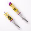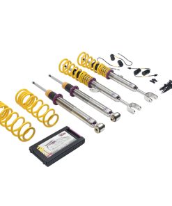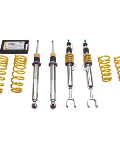 Cutting-edge motorsports technology -or more performance on the road. Like every suspension product developed by KW automotive and manufactured in Germany, the KW Variant 3 Coilover suspension kit also provides a significant improvment on the road. Thanks to the high-quality dampers, springs, and elastomer spring elements, pitching and rolling movements during load changes such as evasive maneuvers, cornering, acceleration, and braking are significantly reduced. The braking distances are also shortened. Thanks to improved support and feedback, drivers not only feel more confident but driving in everyday life is improved. With compression and rebound stage damping, that can be set separately and independently of each other, the damper setup can be customized to your personal driving preferences or vehicle changes such as weight, tire characteristics, or altered vehicle rigidity. True performance optimization is only possible with this unique, patented system. For example, this allows the compression damping force to be increased and get more grip from the tires, to improve cornering behavior and reduce squat without simultaneously altering the rebound stage damping which is optimally matched to the spring rate ? a scenario which results in reduced grip and the associated loss of performance. The KW Variant 3 INOX-LINE coilover kit is the ideal tool for performance-oriented drivers and experienced tuning enthusiasts who place a strong emphasis on the overall performance of their suspension. The Variant 3 features patented TVR-A and TVC-A technology -hat provides separately adjustable rebound and compression damping. The extensive Adjustment -ange of the independently configurable rebound and compression make it easy to directly influence the steering behavior, directional stability, grip and handling characteristics for confident and repeatable results at the limit of driving dynamics.