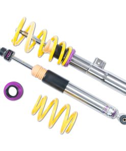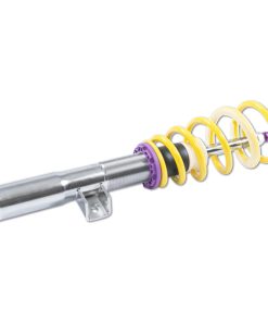 Cutting-edge motorsports technology -or more performance on the road. Like every suspension product developed by KW automotive and manufactured in Germany, the KW Variant 3 Coilover suspension kit also provides a significant improvment on the road. Thanks to the high-quality dampers, springs, and elastomer spring elements, pitching and rolling movements during load changes such as evasive maneuvers, cornering, acceleration, and braking are significantly reduced. The braking distances are also shortened. Thanks to improved support and feedback, drivers not only feel more confident but driving in everyday life is improved. With compression and rebound stage damping, that can be set separately and independently of each other, the damper setup can be customized to your personal driving preferences or vehicle changes such as weight, tire characteristics, or altered vehicle rigidity. True performance optimization is only possible with this unique, patented system. For example, this allows the compression damping force to be increased and get more grip from the tires, to improve cornering behavior and reduce squat without simultaneously altering the rebound stage damping which is optimally matched to the spring rate ? a scenario which results in reduced grip and the associated loss of performance. The KW Variant 3 INOX-LINE coilover kit is the ideal tool for performance-oriented drivers and experienced tuning enthusiasts who place a strong emphasis on the overall performance of their suspension. The Variant 3 features patented TVR-A and TVC-A technology -hat provides separately adjustable rebound and compression damping. The extensive Adjustment -ange of the independently configurable rebound and compression make it easy to directly influence the steering behavior, directional stability, grip and handling characteristics for confident and repeatable results at the limit of driving dynamics.