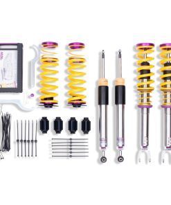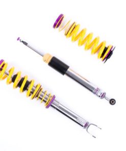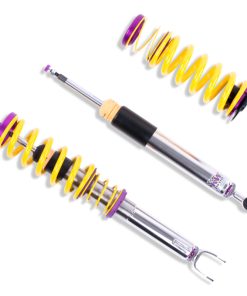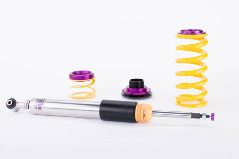 Cutting-edge motorsports technology -or more performance on the road. Like every suspension product developed by KW automotive and manufactured in Germany, the KW Variant 3 Coilover suspension kit also provides a significant improvment on the road. Thanks to the high-quality dampers, springs, and elastomer spring elements, pitching and rolling movements during load changes such as evasive maneuvers, cornering, acceleration, and braking are significantly reduced. The braking distances are also shortened. Thanks to improved support and feedback, drivers not only feel more confident but driving in everyday life is improved. With compression and rebound stage damping, that can be set separately and independently of each other, the damper setup can be customized to your personal driving preferences or vehicle changes such as weight, tire characteristics, or altered vehicle rigidity. True performance optimization is only possible with this unique, patented system. For example, this allows the compression damping force to be increased and get more grip from the tires, to improve cornering behavior and reduce squat without simultaneously altering the rebound stage damping which is optimally matched to the spring rate ? a scenario which results in reduced grip and the associated loss of performance. The KW Variant 3 INOX-LINE coilover kit is the ideal tool for performance-oriented drivers and experienced tuning enthusiasts who place a strong emphasis on the overall performance of their suspension. The Variant 3 features patented TVR-A and TVC-A technology -hat provides separately adjustable rebound and compression damping. The extensive Adjustment -ange of the independently configurable rebound and compression make it easy to directly influence the steering behavior, directional stability, grip and handling characteristics for confident and repeatable results at the limit of driving dynamics.