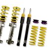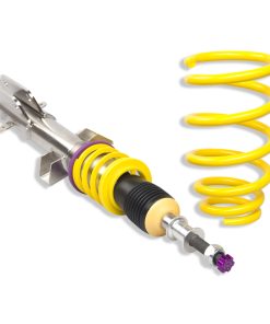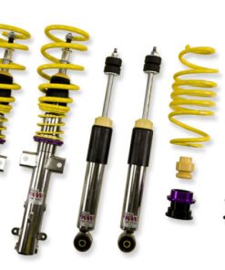 Cutting-edge motorsports technology -or more performance on the road. Like every suspension product developed by KW automotive and manufactured in Germany, the KW Variant 3 Coilover suspension kit also provides a significant improvment on the road. Thanks to the high-quality dampers, springs, and elastomer spring elements, pitching and rolling movements during load changes such as evasive maneuvers, cornering, acceleration, and braking are significantly reduced. The braking distances are also shortened. Thanks to improved support and feedback, drivers not only feel more confident but driving in everyday life is improved. With compression and rebound stage damping, that can be set separately and independently of each other, the damper setup can be customized to your personal driving preferences or vehicle changes such as weight, tire characteristics, or altered vehicle rigidity. True performance optimization is only possible with this unique, patented system. For example, this allows the compression damping force to be increased and get more grip from the tires, to improve cornering behavior and reduce squat without simultaneously altering the rebound stage damping which is optimally matched to the spring rate ? a scenario which results in reduced grip and the associated loss of performance. The KW Variant 3 INOX-LINE coilover kit is the ideal tool for performance-oriented drivers and experienced tuning enthusiasts who place a strong emphasis on the overall performance of their suspension. The Variant 3 features patented TVR-A and TVC-A technology -hat provides separately adjustable rebound and compression damping. The extensive Adjustment -ange of the independently configurable rebound and compression make it easy to directly influence the steering behavior, directional stability, grip and handling characteristics for confident and repeatable results at the limit of driving dynamics.
