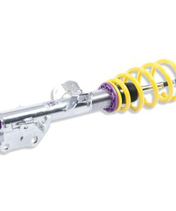 Cutting-edge motorsports technology -or more performance on the road. Like every suspension product developed by KW automotive and manufactured in Germany, the KW Variant 3 Coilover suspension kit also provides a significant improvment on the road. Thanks to the high-quality dampers, springs, and elastomer spring elements, pitching and rolling movements during load changes such as evasive maneuvers, cornering, acceleration, and braking are significantly reduced. The braking distances are also shortened. Thanks to improved support and feedback, drivers not only feel more confident but driving in everyday life is improved. With compression and rebound stage damping, that can be set separately and independently of each other, the damper setup can be customized to your personal driving preferences or vehicle changes such as weight, tire characteristics, or altered vehicle rigidity. True performance optimization is only possible with this unique, patented system. For example, this allows the compression damping force to be increased and get more grip from the tires, to improve cornering behavior and reduce squat without simultaneously altering the rebound stage damping which is optimally matched to the spring rate ? a scenario which results in reduced grip and the associated loss of performance. The KW Variant 3 INOX-LINE coilover kit is the ideal tool for performance-oriented drivers and experienced tuning enthusiasts who place a strong emphasis on the overall performance of their suspension. The Variant 3 features patented TVR-A and TVC-A technology -hat provides separately adjustable rebound and compression damping. The extensive Adjustment -ange of the independently configurable rebound and compression make it easy to directly influence the steering behavior, directional stability, grip and handling characteristics for confident and repeatable results at the limit of driving dynamics.