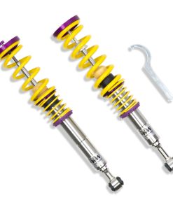 Cutting-edge motorsports technology -or more performance on the road. Like every suspension product developed by KW automotive and manufactured in Germany, the KW Variant 3 Coilover suspension kit also provides a significant improvment on the road. Thanks to the high-quality dampers, springs, and elastomer spring elements, pitching and rolling movements during load changes such as evasive maneuvers, cornering, acceleration, and braking are significantly reduced. The braking distances are also shortened. Thanks to improved support and feedback, drivers not only feel more confident but driving in everyday life is improved. With compression and rebound stage damping, that can be set separately and independently of each other, the damper setup can be customized to your personal driving preferences or vehicle changes such as weight, tire characteristics, or altered vehicle rigidity. True performance optimization is only possible with this unique, patented system. For example, this allows the compression damping force to be increased and get more grip from the tires, to improve cornering behavior and reduce squat without simultaneously altering the rebound stage damping which is optimally matched to the spring rate ? a scenario which results in reduced grip and the associated loss of performance. The KW Variant 3 INOX-LINE coilover kit is the ideal tool for performance-oriented drivers and experienced tuning enthusiasts who place a strong emphasis on the overall performance of their suspension. The Variant 3 features patented TVR-A and TVC-A technology -hat provides separately adjustable rebound and compression damping. The extensive Adjustment -ange of the independently configurable rebound and compression make it easy to directly influence the steering behavior, directional stability, grip and handling characteristics for confident and repeatable results at the limit of driving dynamics.