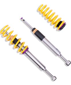Cutting-edge motorsports technology -or more performance on the road. Like every suspension product developed by KW automotive and manufactured in Germany, the KW Variant 3 Coilover suspension kit also provides a significant improvment on the road. Thanks to the high-quality dampers, springs, and elastomer spring elements, pitching and rolling movements during load changes such as evasive maneuvers, cornering, acceleration, and braking are significantly reduced. The braking distances are also shortened. Thanks to improved support and feedback, drivers not only feel more confident but driving in everyday life is improved. With compression and rebound stage damping, that can be set separately and independently of each other, the damper setup can be customized to your personal driving preferences or vehicle changes such as weight, tire characteristics, or altered vehicle rigidity. True performance optimization is only possible with this unique, patented system. For example, this allows the compression damping force to be increased and get more grip from the tires, to improve cornering behavior and reduce squat without simultaneously altering the rebound stage damping which is optimally matched to the spring rate ? a scenario which results in reduced grip and the associated loss of performance. The KW Variant 3 INOX-LINE coilover kit is the ideal tool for performance-oriented drivers and experienced tuning enthusiasts who place a strong emphasis on the overall performance of their suspension. The Variant 3 features patented TVR-A and TVC-A technology -hat provides separately adjustable rebound and compression damping. The extensive Adjustment -ange of the independently configurable rebound and compression make it easy to directly influence the steering behavior, directional stability, grip and handling characteristics for confident and repeatable results at the limit of driving dynamics.
