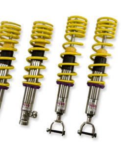 Cutting-edge motorsports technology -or more performance on the road. Like every suspension product developed by KW automotive and manufactured in Germany, the KW Variant 3 Coilover suspension kit also provides a significant improvment on the road. Thanks to the high-quality dampers, springs, and elastomer spring elements, pitching and rolling movements during load changes such as evasive maneuvers, cornering, acceleration, and braking are significantly reduced. The braking distances are also shortened. Thanks to improved support and feedback, drivers not only feel more confident but driving in everyday life is improved. With compression and rebound stage damping, that can be set separately and independently of each other, the damper setup can be customized to your personal driving preferences or vehicle changes such as weight, tire characteristics, or altered vehicle rigidity. True performance optimization is only possible with this unique, patented system. For example, this allows the compression damping force to be increased and get more grip from the tires, to improve cornering behavior and reduce squat without simultaneously altering the rebound stage damping which is optimally matched to the spring rate ? a scenario which results in reduced grip and the associated loss of performance. The KW Variant 3 INOX-LINE coilover kit is the ideal tool for performance-oriented drivers and experienced tuning enthusiasts who place a strong emphasis on the overall performance of their suspension. The Variant 3 features patented TVR-A and TVC-A technology -hat provides separately adjustable rebound and compression damping. The extensive Adjustment -ange of the independently configurable rebound and compression make it easy to directly influence the steering behavior, directional stability, grip and handling characteristics for confident and repeatable results at the limit of driving dynamics.