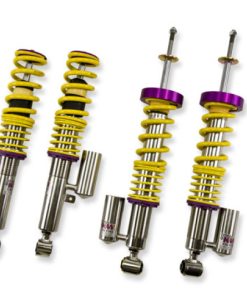 Cutting-edge motorsports technology -or more performance on the road. Like every suspension product developed by KW automotive and manufactured in Germany, the KW Variant 3 Coilover suspension kit also provides a significant improvment on the road. Thanks to the high-quality dampers, springs, and elastomer spring elements, pitching and rolling movements during load changes such as evasive maneuvers, cornering, acceleration, and braking are significantly reduced. The braking distances are also shortened. Thanks to improved support and feedback, drivers not only feel more confident but driving in everyday life is improved. With compression and rebound stage damping, that can be set separately and independently of each other, the damper setup can be customized to your personal driving preferences or vehicle changes such as weight, tire characteristics, or altered vehicle rigidity. True performance optimization is only possible with this unique, patented system. For example, this allows the compression damping force to be increased and get more grip from the tires, to improve cornering behavior and reduce squat without simultaneously altering the rebound stage damping which is optimally matched to the spring rate ? a scenario which results in reduced grip and the associated loss of performance. The KW Variant 3 INOX-LINE coilover kit is the ideal tool for performance-oriented drivers and experienced tuning enthusiasts who place a strong emphasis on the overall performance of their suspension. The Variant 3 features patented TVR-A and TVC-A technology -hat provides separately adjustable rebound and compression damping. The extensive Adjustment -ange of the independently configurable rebound and compression make it easy to directly influence the steering behavior, directional stability, grip and handling characteristics for confident and repeatable results at the limit of driving dynamics.