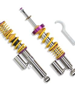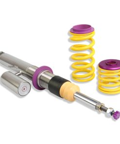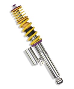 Cutting-edge motorsports technology -or more performance on the road. Like every suspension product developed by KW automotive and manufactured in Germany, the KW Variant 3 Coilover suspension kit also provides a significant improvment on the road. Thanks to the high-quality dampers, springs, and elastomer spring elements, pitching and rolling movements during load changes such as evasive maneuvers, cornering, acceleration, and braking are significantly reduced. The braking distances are also shortened. Thanks to improved support and feedback, drivers not only feel more confident but driving in everyday life is improved. With compression and rebound stage damping, that can be set separately and independently of each other, the damper setup can be customized to your personal driving preferences or vehicle changes such as weight, tire characteristics, or altered vehicle rigidity. True performance optimization is only possible with this unique, patented system. For example, this allows the compression damping force to be increased and get more grip from the tires, to improve cornering behavior and reduce squat without simultaneously altering the rebound stage damping which is optimally matched to the spring rate ? a scenario which results in reduced grip and the associated loss of performance. The KW Variant 3 INOX-LINE coilover kit is the ideal tool for performance-oriented drivers and experienced tuning enthusiasts who place a strong emphasis on the overall performance of their suspension. The Variant 3 features patented TVR-A and TVC-A technology -hat provides separately adjustable rebound and compression damping. The extensive Adjustment -ange of the independently configurable rebound and compression make it easy to directly influence the steering behavior, directional stability, grip and handling characteristics for confident and repeatable results at the limit of driving dynamics.
