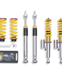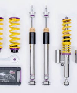 Cutting-edge motorsports technology -or more performance on the road. Like every suspension product developed by KW automotive and manufactured in Germany, the KW Variant 3 Coilover suspension kit also provides a significant improvment on the road. Thanks to the high-quality dampers, springs, and elastomer spring elements, pitching and rolling movements during load changes such as evasive maneuvers, cornering, acceleration, and braking are significantly reduced. The braking distances are also shortened. Thanks to improved support and feedback, drivers not only feel more confident but driving in everyday life is improved. With compression and rebound stage damping, that can be set separately and independently of each other, the damper setup can be customized to your personal driving preferences or vehicle changes such as weight, tire characteristics, or altered vehicle rigidity. True performance optimization is only possible with this unique, patented system. For example, this allows the compression damping force to be increased and get more grip from the tires, to improve cornering behavior and reduce squat without simultaneously altering the rebound stage damping which is optimally matched to the spring rate ? a scenario which results in reduced grip and the associated loss of performance. The KW Variant 3 INOX-LINE coilover kit is the ideal tool for performance-oriented drivers and experienced tuning enthusiasts who place a strong emphasis on the overall performance of their suspension. The Variant 3 features patented TVR-A and TVC-A technology -hat provides separately adjustable rebound and compression damping. The extensive Adjustment -ange of the independently configurable rebound and compression make it easy to directly influence the steering behavior, directional stability, grip and handling characteristics for confident and repeatable results at the limit of driving dynamics.