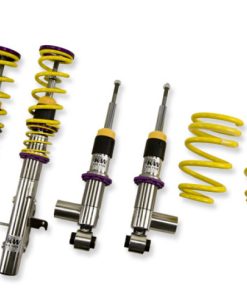 Cutting-edge motorsports technology -or more performance on the road. Like every suspension product developed by KW automotive and manufactured in Germany, the KW Variant 3 Coilover suspension kit also provides a significant improvment on the road. Thanks to the high-quality dampers, springs, and elastomer spring elements, pitching and rolling movements during load changes such as evasive maneuvers, cornering, acceleration, and braking are significantly reduced. The braking distances are also shortened. Thanks to improved support and feedback, drivers not only feel more confident but driving in everyday life is improved. With compression and rebound stage damping, that can be set separately and independently of each other, the damper setup can be customized to your personal driving preferences or vehicle changes such as weight, tire characteristics, or altered vehicle rigidity. True performance optimization is only possible with this unique, patented system. For example, this allows the compression damping force to be increased and get more grip from the tires, to improve cornering behavior and reduce squat without simultaneously altering the rebound stage damping which is optimally matched to the spring rate ? a scenario which results in reduced grip and the associated loss of performance. The KW Variant 3 INOX-LINE coilover kit is the ideal tool for performance-oriented drivers and experienced tuning enthusiasts who place a strong emphasis on the overall performance of their suspension. The Variant 3 features patented TVR-A and TVC-A technology -hat provides separately adjustable rebound and compression damping. The extensive Adjustment -ange of the independently configurable rebound and compression make it easy to directly influence the steering behavior, directional stability, grip and handling characteristics for confident and repeatable results at the limit of driving dynamics.