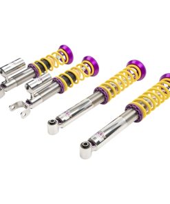 Cutting-edge motorsports technology -or more performance on the road. Like every suspension product developed by KW automotive and manufactured in Germany, the KW Variant 3 Coilover suspension kit also provides a significant improvment on the road. Thanks to the high-quality dampers, springs, and elastomer spring elements, pitching and rolling movements during load changes such as evasive maneuvers, cornering, acceleration, and braking are significantly reduced. The braking distances are also shortened. Thanks to improved support and feedback, drivers not only feel more confident but driving in everyday life is improved. With compression and rebound stage damping, that can be set separately and independently of each other, the damper setup can be customized to your personal driving preferences or vehicle changes such as weight, tire characteristics, or altered vehicle rigidity. True performance optimization is only possible with this unique, patented system. For example, this allows the compression damping force to be increased and get more grip from the tires, to improve cornering behavior and reduce squat without simultaneously altering the rebound stage damping which is optimally matched to the spring rate ? a scenario which results in reduced grip and the associated loss of performance. The KW Variant 3 INOX-LINE coilover kit is the ideal tool for performance-oriented drivers and experienced tuning enthusiasts who place a strong emphasis on the overall performance of their suspension. The Variant 3 features patented TVR-A and TVC-A technology -hat provides separately adjustable rebound and compression damping. The extensive Adjustment -ange of the independently configurable rebound and compression make it easy to directly influence the steering behavior, directional stability, grip and handling characteristics for confident and repeatable results at the limit of driving dynamics.