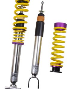 Cutting-edge motorsports technology -or more performance on the road. Like every suspension product developed by KW automotive and manufactured in Germany, the KW Variant 3 Coilover suspension kit also provides a significant improvment on the road. Thanks to the high-quality dampers, springs, and elastomer spring elements, pitching and rolling movements during load changes such as evasive maneuvers, cornering, acceleration, and braking are significantly reduced. The braking distances are also shortened. Thanks to improved support and feedback, drivers not only feel more confident but driving in everyday life is improved. With compression and rebound stage damping, that can be set separately and independently of each other, the damper setup can be customized to your personal driving preferences or vehicle changes such as weight, tire characteristics, or altered vehicle rigidity. True performance optimization is only possible with this unique, patented system. For example, this allows the compression damping force to be increased and get more grip from the tires, to improve cornering behavior and reduce squat without simultaneously altering the rebound stage damping which is optimally matched to the spring rate ? a scenario which results in reduced grip and the associated loss of performance. The KW Variant 3 INOX-LINE coilover kit is the ideal tool for performance-oriented drivers and experienced tuning enthusiasts who place a strong emphasis on the overall performance of their suspension. The Variant 3 features patented TVR-A and TVC-A technology -hat provides separately adjustable rebound and compression damping. The extensive Adjustment -ange of the independently configurable rebound and compression make it easy to directly influence the steering behavior, directional stability, grip and handling characteristics for confident and repeatable results at the limit of driving dynamics.