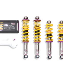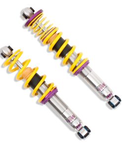 Cutting-edge motorsports technology -or more performance on the road. Like every suspension product developed by KW automotive and manufactured in Germany, the KW Variant 3 Coilover suspension kit also provides a significant improvment on the road. Thanks to the high-quality dampers, springs, and elastomer spring elements, pitching and rolling movements during load changes such as evasive maneuvers, cornering, acceleration, and braking are significantly reduced. The braking distances are also shortened. Thanks to improved support and feedback, drivers not only feel more confident but driving in everyday life is improved. With compression and rebound stage damping, that can be set separately and independently of each other, the damper setup can be customized to your personal driving preferences or vehicle changes such as weight, tire characteristics, or altered vehicle rigidity. True performance optimization is only possible with this unique, patented system. For example, this allows the compression damping force to be increased and get more grip from the tires, to improve cornering behavior and reduce squat without simultaneously altering the rebound stage damping which is optimally matched to the spring rate ? a scenario which results in reduced grip and the associated loss of performance. The KW Variant 3 INOX-LINE coilover kit is the ideal tool for performance-oriented drivers and experienced tuning enthusiasts who place a strong emphasis on the overall performance of their suspension. The Variant 3 features patented TVR-A and TVC-A technology -hat provides separately adjustable rebound and compression damping. The extensive Adjustment -ange of the independently configurable rebound and compression make it easy to directly influence the steering behavior, directional stability, grip and handling characteristics for confident and repeatable results at the limit of driving dynamics.
