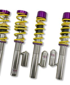 Cutting-edge motorsports technology -or more performance on the road. Like every suspension product developed by KW automotive and manufactured in Germany, the KW Variant 3 Coilover suspension kit also provides a significant improvment on the road. Thanks to the high-quality dampers, springs, and elastomer spring elements, pitching and rolling movements during load changes such as evasive maneuvers, cornering, acceleration, and braking are significantly reduced. The braking distances are also shortened. Thanks to improved support and feedback, drivers not only feel more confident but driving in everyday life is improved. With compression and rebound stage damping, that can be set separately and independently of each other, the damper setup can be customized to your personal driving preferences or vehicle changes such as weight, tire characteristics, or altered vehicle rigidity. True performance optimization is only possible with this unique, patented system. For example, this allows the compression damping force to be increased and get more grip from the tires, to improve cornering behavior and reduce squat without simultaneously altering the rebound stage damping which is optimally matched to the spring rate ? a scenario which results in reduced grip and the associated loss of performance. The KW Variant 3 INOX-LINE coilover kit is the ideal tool for performance-oriented drivers and experienced tuning enthusiasts who place a strong emphasis on the overall performance of their suspension. The Variant 3 features patented TVR-A and TVC-A technology -hat provides separately adjustable rebound and compression damping. The extensive Adjustment -ange of the independently configurable rebound and compression make it easy to directly influence the steering behavior, directional stability, grip and handling characteristics for confident and repeatable results at the limit of driving dynamics.
