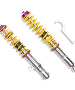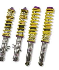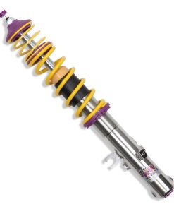 Cutting-edge motorsports technology -or more performance on the road. Like every suspension product developed by KW automotive and manufactured in Germany, the KW Variant 3 Coilover suspension kit also provides a significant improvment on the road. Thanks to the high-quality dampers, springs, and elastomer spring elements, pitching and rolling movements during load changes such as evasive maneuvers, cornering, acceleration, and braking are significantly reduced. The braking distances are also shortened. Thanks to improved support and feedback, drivers not only feel more confident but driving in everyday life is improved. With compression and rebound stage damping, that can be set separately and independently of each other, the damper setup can be customized to your personal driving preferences or vehicle changes such as weight, tire characteristics, or altered vehicle rigidity. True performance optimization is only possible with this unique, patented system. For example, this allows the compression damping force to be increased and get more grip from the tires, to improve cornering behavior and reduce squat without simultaneously altering the rebound stage damping which is optimally matched to the spring rate ? a scenario which results in reduced grip and the associated loss of performance. The KW Variant 3 INOX-LINE coilover kit is the ideal tool for performance-oriented drivers and experienced tuning enthusiasts who place a strong emphasis on the overall performance of their suspension. The Variant 3 features patented TVR-A and TVC-A technology -hat provides separately adjustable rebound and compression damping. The extensive Adjustment -ange of the independently configurable rebound and compression make it easy to directly influence the steering behavior, directional stability, grip and handling characteristics for confident and repeatable results at the limit of driving dynamics.
