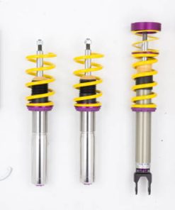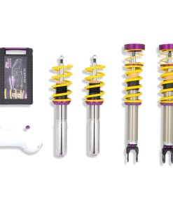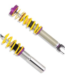 Cutting-edge motorsports technology -or more performance on the road. Like every suspension product developed by KW automotive and manufactured in Germany, the KW Variant 3 Coilover suspension kit also provides a significant improvment on the road. Thanks to the high-quality dampers, springs, and elastomer spring elements, pitching and rolling movements during load changes such as evasive maneuvers, cornering, acceleration, and braking are significantly reduced. The braking distances are also shortened. Thanks to improved support and feedback, drivers not only feel more confident but driving in everyday life is improved. With compression and rebound stage damping, that can be set separately and independently of each other, the damper setup can be customized to your personal driving preferences or vehicle changes such as weight, tire characteristics, or altered vehicle rigidity. True performance optimization is only possible with this unique, patented system. For example, this allows the compression damping force to be increased and get more grip from the tires, to improve cornering behavior and reduce squat without simultaneously altering the rebound stage damping which is optimally matched to the spring rate ? a scenario which results in reduced grip and the associated loss of performance. The KW Variant 3 INOX-LINE coilover kit is the ideal tool for performance-oriented drivers and experienced tuning enthusiasts who place a strong emphasis on the overall performance of their suspension. The Variant 3 features patented TVR-A and TVC-A technology -hat provides separately adjustable rebound and compression damping. The extensive Adjustment -ange of the independently configurable rebound and compression make it easy to directly influence the steering behavior, directional stability, grip and handling characteristics for confident and repeatable results at the limit of driving dynamics.