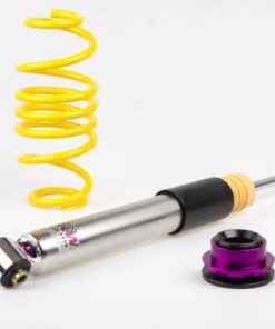 Cutting-edge motorsports technology -or more performance on the road. Like every suspension product developed by KW automotive and manufactured in Germany, the KW Variant 3 Coilover suspension kit also provides a significant improvment on the road. Thanks to the high-quality dampers, springs, and elastomer spring elements, pitching and rolling movements during load changes such as evasive maneuvers, cornering, acceleration, and braking are significantly reduced. The braking distances are also shortened. Thanks to improved support and feedback, drivers not only feel more confident but driving in everyday life is improved. With compression and rebound stage damping, that can be set separately and independently of each other, the damper setup can be customized to your personal driving preferences or vehicle changes such as weight, tire characteristics, or altered vehicle rigidity. True performance optimization is only possible with this unique, patented system. For example, this allows the compression damping force to be increased and get more grip from the tires, to improve cornering behavior and reduce squat without simultaneously altering the rebound stage damping which is optimally matched to the spring rate ? a scenario which results in reduced grip and the associated loss of performance. The KW Variant 3 INOX-LINE coilover kit is the ideal tool for performance-oriented drivers and experienced tuning enthusiasts who place a strong emphasis on the overall performance of their suspension. The Variant 3 features patented TVR-A and TVC-A technology -hat provides separately adjustable rebound and compression damping. The extensive Adjustment -ange of the independently configurable rebound and compression make it easy to directly influence the steering behavior, directional stability, grip and handling characteristics for confident and repeatable results at the limit of driving dynamics.