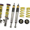 Designed to maximize the performance on vehicles with DOT-R and other ultra high-performance tire setups. KW Clubsport 2-Way coilovers are the ideal choice for double-duty street cars, use at HPDE’s(high performance drivers education), time attack or time trials, and club level racing.The Clubsport setup was specially designed on the Nordschleife and the continuous adjustable ride height allows for fine corner weight or making setup changes. The TVR-A and TVC-A valve technology -rovide an unmatched level of separately adjustable damping for the rebound and compression enabling a customized set up appropriate for the vehicle’s modifications such as weight, tire characteristics, and other various conditions. The KW Clubsport 2-Way INOX-LINE coilover kit is the ideal tool for performance-oriented drivers and experienced tuning enthusiasts who place a strong emphasis on the overall performance of their suspension. The KW 2-Way Clubsport features patented TVR-A and TVC-A technology -hat provides separately adjustable rebound and compression damping. The extensive Adjustment -ange of the independently configurable rebound and compression make it easy to directly influence the steering behavior, directional stability, grip and handling characteristics for confident and repeatable results at the limit of driving dynamics.