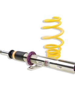 Cutting-edge motorsports technology -or more performance on the road. Like every suspension product developed by KW automotive and manufactured in Germany, the KW Variant 3 Coilover suspension kit also provides a significant improvment on the road. Thanks to the high-quality dampers, springs, and elastomer spring elements, pitching and rolling movements during load changes such as evasive maneuvers, cornering, acceleration, and braking are significantly reduced. The braking distances are also shortened. Thanks to improved support and feedback, drivers not only feel more confident but driving in everyday life is improved. With compression and rebound stage damping, that can be set separately and independently of each other, the damper setup can be customized to your personal driving preferences or vehicle changes such as weight, tire characteristics, or altered vehicle rigidity. True performance optimization is only possible with this unique, patented system. For example, this allows the compression damping force to be increased and get more grip from the tires, to improve cornering behavior and reduce squat without simultaneously altering the rebound stage damping which is optimally matched to the spring rate ? a scenario which results in reduced grip and the associated loss of performance. The KW Variant 3 INOX-LINE coilover kit is the ideal tool for performance-oriented drivers and experienced tuning enthusiasts who place a strong emphasis on the overall performance of their suspension. The Variant 3 features patented TVR-A and TVC-A technology -hat provides separately adjustable rebound and compression damping. The extensive Adjustment -ange of the independently configurable rebound and compression make it easy to directly influence the steering behavior, directional stability, grip and handling characteristics for confident and repeatable results at the limit of driving dynamics.