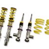 Designed to maximize the performance on vehicles with DOT-R and other ultra high-performance tire setups. KW Clubsport 2-Way coilovers are the ideal choice for double-duty street cars, use at HPDE’s(high performance drivers education), time attack or time trials, and club level racing.The Clubsport setup was specially designed on the Nordschleife and the continuous adjustable ride height allows for fine corner weight or making setup changes. The TVR-A and TVC-A valve technology -rovide an unmatched level of separately adjustable damping for the rebound and compression enabling a customized set up appropriate for the vehicle’s modifications such as weight, tire characteristics, and other various conditions. The KW Clubsport 2-Way INOX-LINE coilover kit is the ideal tool for performance-oriented drivers and experienced tuning enthusiasts who place a strong emphasis on the overall performance of their suspension. The KW 2-Way Clubsport features patented TVR-A and TVC-A technology -hat provides separately adjustable rebound and compression damping. The extensive Adjustment -ange of the independently configurable rebound and compression make it easy to directly influence the steering behavior, directional stability, grip and handling characteristics for confident and repeatable results at the limit of driving dynamics.