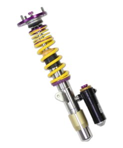 Using the Nordschleife as it’s testing grounds and the 7-post rig, KW developed it’s 3-way Clubsport coilover kit. Wheel loads, vehicle weight and chassis reinforcements (increased body stiffness) can all be taken into consideration with Adjustment -apabilities of the 3-way Clubsport. The KW Clubsport coilovers combine KW’s high-end racing technology -ith maintenance-free KW OEM quality components. Designed to provide you the ideal product to utilize the full potential of your sports car during autocross, track days, high performance drivers education (HPDE) courses, club racing, and is tested rigorously on race tracks such as the Nurburgring Nordschleife. Race teams rely on KW’s racing expertise and experience for their vehicle setup. This same championship winning pedigree is mirrored in the development of each one of the KW Clubsport coilover systems. Similar to the KW Competition suspension used in international motorsports, the KW 3-Way Clubsport coilover kit allows fine tuning of the compression damping separately in the low-speed and high-speed range. The click adjustments of the TVCLH-A valve technology -ake for easy Adjustment -irectly on the reservoir. You can modify the low-speed compression damping with 6 precise clicks with the purple low speed Adjustment -ial and directly beneath it the golden Adjustment -heel provides an additional 14 precise clicks of high speed compression adjustment. In addition, the TVR-A technology -rovides 16 clicks to noticeably adjust the rebound damping independently of the compression damping. If you would like to adjust the KW 3-Way Clubsport coilover kit it can easily be adjusted for more comfort or to an alternative setup for a new race track. The KW 3-Way Clubsport benefits from the same motorsports technology -hat has proven its endurance with multiple overall wins at the ADAC Zurich 24h Nurburgring race.