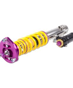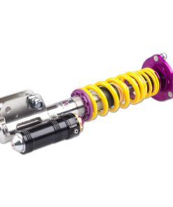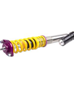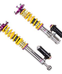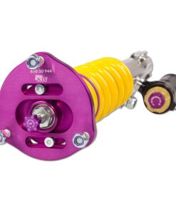 Using the Nordschleife as it’s testing grounds and the 7-post rig, KW developed it’s 3-way Clubsport coilover kit. Wheel loads, vehicle weight and chassis reinforcements (increased body stiffness) can all be taken into consideration with Adjustment -apabilities of the 3-way Clubsport. The KW Clubsport coilovers combine KW’s high-end racing technology -ith maintenance-free KW OEM quality components. Designed to provide you the ideal product to utilize the full potential of your sports car during autocross, track days, high performance drivers education (HPDE) courses, club racing, and is tested rigorously on race tracks such as the Nurburgring Nordschleife. Race teams rely on KW’s racing expertise and experience for their vehicle setup. This same championship winning pedigree is mirrored in the development of each one of the KW Clubsport coilover systems. Similar to the KW Competition suspension used in international motorsports, the KW 3-Way Clubsport coilover kit allows fine tuning of the compression damping separately in the low-speed and high-speed range. The click adjustments of the TVCLH-A valve technology -ake for easy Adjustment -irectly on the reservoir. You can modify the low-speed compression damping with 6 precise clicks with the purple low speed Adjustment -ial and directly beneath it the golden Adjustment -heel provides an additional 14 precise clicks of high speed compression adjustment. In addition, the TVR-A technology -rovides 16 clicks to noticeably adjust the rebound damping independently of the compression damping. If you would like to adjust the KW 3-Way Clubsport coilover kit it can easily be adjusted for more comfort or to an alternative setup for a new race track. The KW 3-Way Clubsport benefits from the same motorsports technology -hat has proven its endurance with multiple overall wins at the ADAC Zurich 24h Nurburgring race.