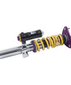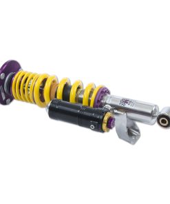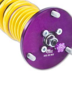 Using the Nordschleife as it’s testing grounds and the 7-post rig, KW developed it’s 3-way Clubsport coilover kit. Wheel loads, vehicle weight and chassis reinforcements (increased body stiffness) can all be taken into consideration with Adjustment -apabilities of the 3-way Clubsport. The KW Clubsport coilovers combine KW’s high-end racing technology -ith maintenance-free KW OEM quality components. Designed to provide you the ideal product to utilize the full potential of your sports car during autocross, track days, high performance drivers education (HPDE) courses, club racing, and is tested rigorously on race tracks such as the Nurburgring Nordschleife. Race teams rely on KW’s racing expertise and experience for their vehicle setup. This same championship winning pedigree is mirrored in the development of each one of the KW Clubsport coilover systems. Similar to the KW Competition suspension used in international motorsports, the KW 3-Way Clubsport coilover kit allows fine tuning of the compression damping separately in the low-speed and high-speed range. The click adjustments of the TVCLH-A valve technology -ake for easy Adjustment -irectly on the reservoir. You can modify the low-speed compression damping with 6 precise clicks with the purple low speed Adjustment -ial and directly beneath it the golden Adjustment -heel provides an additional 14 precise clicks of high speed compression adjustment. In addition, the TVR-A technology -rovides 16 clicks to noticeably adjust the rebound damping independently of the compression damping. If you would like to adjust the KW 3-Way Clubsport coilover kit it can easily be adjusted for more comfort or to an alternative setup for a new race track. The KW 3-Way Clubsport benefits from the same motorsports technology -hat has proven its endurance with multiple overall wins at the ADAC Zurich 24h Nurburgring race.