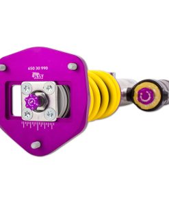 Using the Nordschleife as it’s testing grounds and the 7-post rig, KW developed it’s 3-way Clubsport coilover kit. Wheel loads, vehicle weight and chassis reinforcements (increased body stiffness) can all be taken into consideration with Adjustment -apabilities of the 3-way Clubsport. The KW Clubsport coilovers combine KW’s high-end racing technology -ith maintenance-free KW OEM quality components. Designed to provide you the ideal product to utilize the full potential of your sports car during autocross, track days, high performance drivers education (HPDE) courses, club racing, and is tested rigorously on race tracks such as the Nurburgring Nordschleife. Race teams rely on KW’s racing expertise and experience for their vehicle setup. This same championship winning pedigree is mirrored in the development of each one of the KW Clubsport coilover systems. Similar to the KW Competition suspension used in international motorsports, the KW 3-Way Clubsport coilover kit allows fine tuning of the compression damping separately in the low-speed and high-speed range. The click adjustments of the TVCLH-A valve technology -ake for easy Adjustment -irectly on the reservoir. You can modify the low-speed compression damping with 6 precise clicks with the purple low speed Adjustment -ial and directly beneath it the golden Adjustment -heel provides an additional 14 precise clicks of high speed compression adjustment. In addition, the TVR-A technology -rovides 16 clicks to noticeably adjust the rebound damping independently of the compression damping. If you would like to adjust the KW 3-Way Clubsport coilover kit it can easily be adjusted for more comfort or to an alternative setup for a new race track. The KW 3-Way Clubsport benefits from the same motorsports technology -hat has proven its endurance with multiple overall wins at the ADAC Zurich 24h Nurburgring race.
