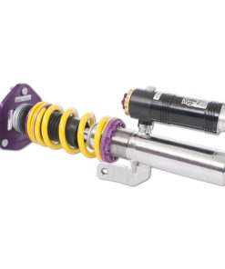 Using the Nordschleife as it’s testing grounds and the 7-post rig, KW developed it’s 3-way Clubsport coilover kit. Wheel loads, vehicle weight and chassis reinforcements (increased body stiffness) can all be taken into consideration with Adjustment -apabilities of the 3-way Clubsport. The KW Clubsport coilovers combine KW’s high-end racing technology -ith maintenance-free KW OEM quality components. Designed to provide you the ideal product to utilize the full potential of your sports car during autocross, track days, high performance drivers education (HPDE) courses, club racing, and is tested rigorously on race tracks such as the Nurburgring Nordschleife. Race teams rely on KW’s racing expertise and experience for their vehicle setup. This same championship winning pedigree is mirrored in the development of each one of the KW Clubsport coilover systems. Similar to the KW Competition suspension used in international motorsports, the KW 3-Way Clubsport coilover kit allows fine tuning of the compression damping separately in the low-speed and high-speed range. The click adjustments of the TVCLH-A valve technology -ake for easy Adjustment -irectly on the reservoir. You can modify the low-speed compression damping with 6 precise clicks with the purple low speed Adjustment -ial and directly beneath it the golden Adjustment -heel provides an additional 14 precise clicks of high speed compression adjustment. In addition, the TVR-A technology -rovides 16 clicks to noticeably adjust the rebound damping independently of the compression damping. If you would like to adjust the KW 3-Way Clubsport coilover kit it can easily be adjusted for more comfort or to an alternative setup for a new race track. The KW 3-Way Clubsport benefits from the same motorsports technology -hat has proven its endurance with multiple overall wins at the ADAC Zurich 24h Nurburgring race.