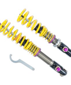 KW Variant 4 coilovers are a combination of our innovative, race proven technology, as well as decades of experience tuning high end sports cars, super sedans and exotics such as the Audi R8, Audi RS6, BMW M5, Lamborghini Aventador LP 750-4 SV, Dodge Charger SRT Hellcat, Mercedes AMG GT and more. In addition to the individually adjustable ride height the KW Variant 4 coilover kit allows an independent Adjustment -f the rebound damping as well as the low-speed and high-speed compression damping. Each KW Variant 4 coilover kit is delivered with a vehicle-specific comfort setting and with the integrated Adjustment -ontrols the damping characteristics can be set quickly and intuitively transformed to an optimized performance setup. The 3-way adjustable high-performance dampers in the KW Variant 4 coilover kits feature independent Adjustment -f the rebound damping utilizing patented TVR-A technology, as well as the low speed and high speed compression damping utilizing TVCLH-A technology. The KW Variant 4 coilovers are based upon successful race technology utilized by multiple overall winners of the ADAC Zurich 24h Nurburgring race.The new KW Variant 4 coilovers are exclusively developed for select high-performance vehicles, which benefit greatly from the KW suspension technology -o improve their driving dynamics.