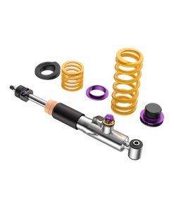 KW Variant 4 coilovers are a combination of our innovative, race proven technology, as well as decades of experience tuning high end sports cars, super sedans and exotics such as the Audi R8, Audi RS6, BMW M5, Lamborghini Aventador LP 750-4 SV, Dodge Charger SRT Hellcat, Mercedes AMG GT and more. In addition to the individually adjustable ride height the KW Variant 4 coilover kit allows an independent Adjustment -f the rebound damping as well as the low-speed and high-speed compression damping. Each KW Variant 4 coilover kit is delivered with a vehicle-specific comfort setting and with the integrated Adjustment -ontrols the damping characteristics can be set quickly and intuitively transformed to an optimized performance setup. The 3-way adjustable high-performance dampers in the KW Variant 4 coilover kits feature independent Adjustment -f the rebound damping utilizing patented TVR-A technology, as well as the low speed and high speed compression damping utilizing TVCLH-A technology. The KW Variant 4 coilovers are based upon successful race technology utilized by multiple overall winners of the ADAC Zurich 24h Nurburgring race.The new KW Variant 4 coilovers are exclusively developed for select high-performance vehicles, which benefit greatly from the KW suspension technology -o improve their driving dynamics.