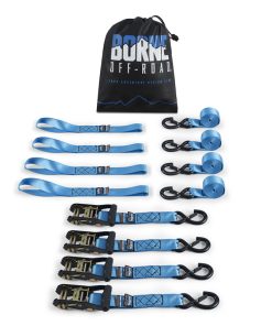 When transporting items, it is critical to use high quality tie downs to ensure your load stays safe and secure during travel. The Borne Off-Road Heavy-Duty Ratchet Tie-Down Kit offers strength and security for your precious cargo, and peace of mind for you to know that your load will get to its destination safely. The 4 premium 1.6-inch by 8-foot ratcheting tie-downs ensure that you’ll have enough length to reach your tie down points and the strength to keep it secure, with a 5,200-pound Max Break Strength and 1,700-pound Working Load Limit. The padded handles let you get a good grip to tighten your load comfortably. The 4 soft loop tie-down straps give you the capability to tie off anything you need to haul without fear of damage or for items with less-than-ideal dimensions to strap to. Perfect for transporting ATVs, UTVs, and any other cargo. As with all of our products, the Borne Off-Road Medium-Duty Ratchet Tie-Down Kit is backed by our Mishimoto Lifetime Warranty.
