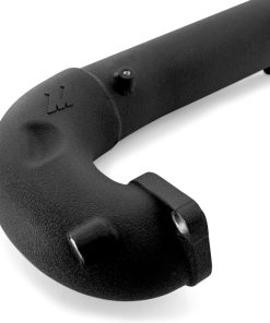 Our inlet tube is constructed with a robust CNC-machined cast-aluminum turbo compressor inlet connection flange. This mating surface is designed to OEM specifications, providing a perfect bolt-on fit. The upper portion of the tube is fabricated from mandrel-bent aluminum piping, which is professionally TIG welded to the cast lower. The inlet tube mates to our 4” rotational-molded MAF housing via a durable 4-ply silicone coupler. This MAF housing includes mounting flanges for the MAF sensor as well as the EVAP hose flange.
