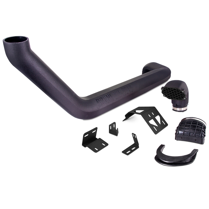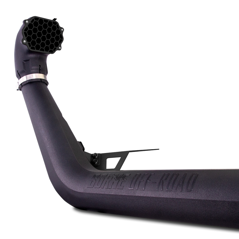 Raised intakes, or snorkels, are one of the best modifications you can do for your 2020+ Jeep Gladiator JT if you plan to spend a lot of time off-road. As anybody who?s ever driven on a trail knows, dust and debris are a fact of life off-road. The Gladiator intake has a fresh air duct that pulls outside air from the passenger fender area. But when the vehicle in front of you is kicking up dust, or you?re fording three feet of water, that air isn?t very fresh. Heavy dust often stays low to the ground, about where the stock fresh air inlet lives, but Borne Off-Road has a solution to get fresh air into your intake. This Borne Off-Road 2020+ Jeep Gladiator JT Snorkel moves the fresh air inlet over 20 inches above the stock location, allowing the engine to pull in cleaner air. Our precision rotational-molded tube is made from durable, UV-resistant cross-linked polyethylene that can withstand the heat of the sun and any debris the trail can throw at it. The top of our snorkel includes a 6-inch inlet with a steel mesh cover to protect the intake from large debris. This inlet can also be swapped for a pre-filter to help keep your main intake filter clean. Our snorkel mounts to the Gladiator’s body with sturdy 2.5mm-thick steel brackets and mates directly to the stock lower airbox, making it perfect for use with the Mishimoto intake. The brackets and inlet screen are powder coated for maximum durability and are available in micro-wrinkle black, micro-wrinkle blue, or micro-wrinkle red. We also offer the brackets and screen in a gray primer that can be easily customized to suit any build*. Like all Mishimoto and Borne Off-Road Gladiator products, this 2020+ Jeep Gladiator JT Snorkel is backed by our Mishimoto Lifetime Warranty. Borne Off-Road by Mishimoto was created to offer a wide variety of high-quality products tailored to the adventurous lifestyle of our off-roading customers. From product design and construction, to branding and packa
