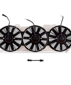 Crawling up steep rock faces, muddy hills, or narrow trails can put a lot of stress on your 1989?2001 Jeep Cherokee XJ 4.0L cooling system. The stock fan system on the 1989?2001 Jeep Cherokee XJ 4.0L is an archaic design that?s powered by the vehicle?s engine. It adds a lot of weight and drag to the engine, sucking horsepower and torque just to get it moving. Once it does start moving, the amount of air it moves is dependent on the engine speed. If the engine isn?t turning fast, neither is the fan, and there?s no air moving through your radiator. That?s why Mishimoto is excited to announce our 1989?2001 Jeep Cherokee XJ 4.0L Performance Aluminum Fan Shroud. This fan shroud incorporates three Mishimoto high-flow 10? electric slim fans. Each of these fans moves a constant 950 CFM regardless of engine speed. One fan replaces the stock A/C fan, while the other two fans are free to cool the radiator. The included A/C fan jumper harness ensures proper A/C function with 1997-2001 models. The lightweight aluminum fan shroud also covers more of the radiator than the stock fan shroud, meaning your entire radiator can benefit from the increase airflow. In our testing, we found that the Mishimoto XJ Fan shroud moved air 41.9% better than the stock fan shroud at idle and 22% better than the stock fans at 2,500 RPM. Our electric fan shroud also eliminates the heavy mechanical fan, reducing drag on the engine and freeing up horsepower and torque for your trail climbing enjoyment. The Mishimoto fans can be activated manually with a switch (sold separately) or by our available adjustable fan controller. The Mishimoto fan controller mounts conveniently on the Mishimoto fan shroud and can be set to activate the fans at any temperature from 150 F to 240 F. The kit includes everything you need for installation, including a wiring harness and a push-in radiator probe temperature sensor and in-line NPT temperature sensor. The Mishimoto 1989?2001 Jeep Ch