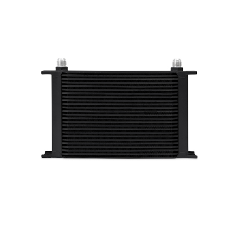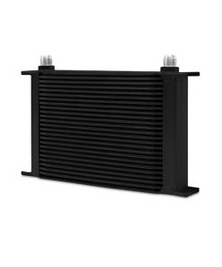 Every street or track vehicle demands a reliable and efficient cooling system.High oil temperatures accelerate oil degradation and can result in increased engine wear and potential failure of internal components.The Mishimoto universal 25-row oil cooler is the perfect upgrade for extending engine life and ensuring the proper lubrication of engine components while maintaining ideal oil temperatures.This oil cooler is nearly 2 inches thick and has an overall oil capacity of .44 qt.The Mishimoto universal 25-row oil cooler is available in silver or black and includes the Mishimoto lifetime warranty.