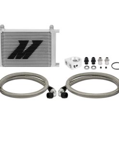 Proper oil temperature regulation is key to extending and preserving the life of your stock or high performance engine.Keep your temperatures in check with the 25-Row Mishimoto Universal Oil Cooler Kit.This kit is applicable for most vehicles and includes all key components for reducing oil temperatures and providing your engine with extra protection against oil degradation.This kit includes a billet anodized aluminum sandwich plate in either standard or thermostatic form.The optional Mishimoto Thermostatic Sandwich Plate provides additional temperature control and will limit oil flow to the cooler until optimal temperatures are reached, making it ideal for those in cooler climates.The included core is our proven Mishimoto 25-row stacked-plate cooler which can withstand high fluid pressures and significantly reduce oil temperatures while exhibiting minimal pressure loss.This kit includes both a 3/4-16 and M20-1.5 sandwich plate adapter which supports fitment for most makes and models.This kit also includes pre-assembled stainless steel braided oil lines with -10AN fittings and dowty seals for durable, leak free connections.Whether you are piloting a boosted rotary or a blown small block, the Mishimoto Universal Oil Cooler Kit will provide the efficiency you need to stay on the track and out of the shop.As with all our products this kit includes the Mishimoto Limited Lifetime Warranty.