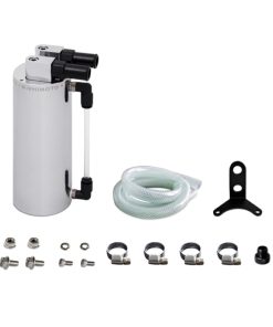 The Mishimoto Aluminum Oil Catch Can will prevent a harmful buildup of oil inside of the turbocharger, intake manifold, intercooler and piping.Our catch can prevents oil from getting into pressurized turbo plumbing and stops oil vapors from getting into the intake system that would ultimately lead to lower combustion temperatures and reduced overall efficiency.The polished Mishimoto Aluminum Oil Catch Can comes complete as a kit containing a mounting bracket, hose, all necessary clamps, fittings, and mounting hardware, for a perfect upgrade in performance and aesthetics for your car.