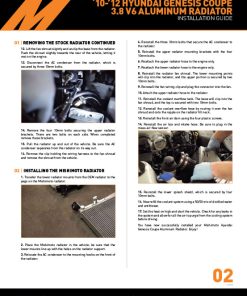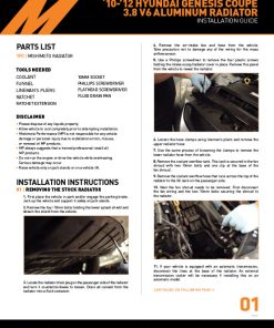 Mishimoto has developed a performance aluminum radiator available for the 2010-13 V6 Hyundai Genesis Coupe.This is the ideal upgrade to your stock Genesis Coupe radiator.Having a high-displacement V6 produces a great amount of heat; by replacing your current Hyundai Genesis radiator with a top of the line Mishimoto performance aluminum radiator you will undoubtedly notice a cooler, more efficient running engine.Our testing showed a 30 degree decrease in temperatures over stock.The new application is specifically designed and engineered as a direct OEM fit with no modification required for easy installation.