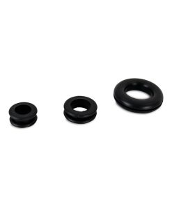 Our 125-piece nitrile rubber grommet/plug assortment kit provides eleven popular grommet sizes and seven standard plug sizes, ensuring you will have the exact component you need to get the job done. These grommets are designed to protect wires, lines, cables, and hoses from damage incurred by chafing or rubbing on sharp metal/plastic edges. Mishimoto grommets and plugs are constructed from durable yet pliable high-quality nitrile rubber. This material is ideal for automotive use thanks to its UV resistance, non-flammability, and resistance to high temperatures and frequent temperature variations. In addition, this kit includes a resealable carrying case that organizes grommets and plugs by size and provides easy access and portability.