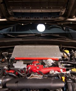 Looking for a way to reduce high intake temperatures on your stock or modified STI? The solution is the Mishimoto direct-fit top-mount intercooler engineered specifically for the 2008-2014 Subaru WRX STI. Mishimoto engineers spent months designing and testing this new intercooler to ensure optimum performance on both the street and track. This intercooler utilizes durable cast aluminum end tanks TIG-welded to a highly efficient, dense bar-and-plate core. The Mishimoto intercooler has a 3.75 inch thick core and a total volume of 584 in3. Thanks to this volume and a very dense offset fin pitch, we are able to optimize heat transfer and support vehicles from stock up to 400 whp. This intercooler endured rigorous testing, showing a 10 degree Fahrenheit temperature drop as well as a +5 whp and +7 wtq bolt-on power increase for our stock test vehicle. Installation is simple, requires no modification to the stock A/C line, and can be completed in under 30 minutes. Included with this intercooler are new Y-pipe gaskets, a new BPV gasket, a silicone PCV hose, and a silicone throttle-body coupler. These components negate the need to gather supplies for installation, and they ensure years of reliable service. This intercooler is available in a durable powder-coated finish of Stealth Black or Sleek Silver, and it includes the Mishimoto Lifetime Warranty.