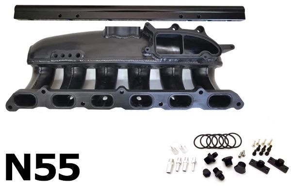 When it comes to intake manifolds, it doesn’t get any better than this. The Phoenix Racing intake manifold replaces your weak factory plastic N54/N55 manifold with a direct fit high flow high strength aluminum manifold. Features port injection bungs located on the top of the manifold for easy access and optimal injector spray pattern, expansion vacuum ports perfect for larger diameter blow-off valve references, additional gauges, Hobb’s switches, and any other expansion you can imagine. Includes high-quality o-rings and all required hardware. Available with required port injection hardware (calibrated injectors with plug and play fuel line), or ala-cart without the extra fueling hardware. Fits all N54 and N55 Engines.