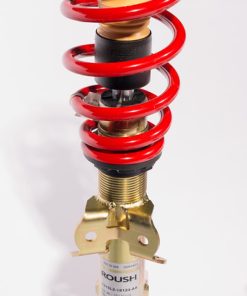 Dramatically improve your Mustang?s handling and appearance with ROUSH Coilovers. Our Single Adjustable Suspension Kit combines a set of performance struts and shocks, tuned for a perfect balance of control and comfort, with height adjustable performance springs. This kit will lower your Mustang 1.5? inches in the front and 1.0? in the rear with plenty of room for additional adjustment. Easily tailor the stance of your ride, or adjust corner weights for optimum balance. Rated for over 1.0g lateral acceleration, this kit is perfect for track days, autocross or a spirited drive down your favorite back road. ROUSH Suspension Kits are engineered and tested to achieve proper balance with whole vehicle as an integrated system and will take your Mustang to the next level. This is a comprehensive Mustang suspension upgrade, and includes the following components: ZINC plated steel coilovers with red power coated springs (Front) ROUSH tuned rear shocks Adjustable spring mounts w/ red powder coated springs (Rear) Front and Rear height adjustment spanners