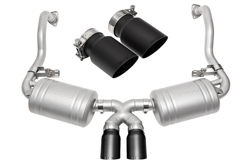 SOUL 05-08 Porsche 987.1 Cayman / Boxster Performance Exhaust – Slash Cut Satin Black Tips
