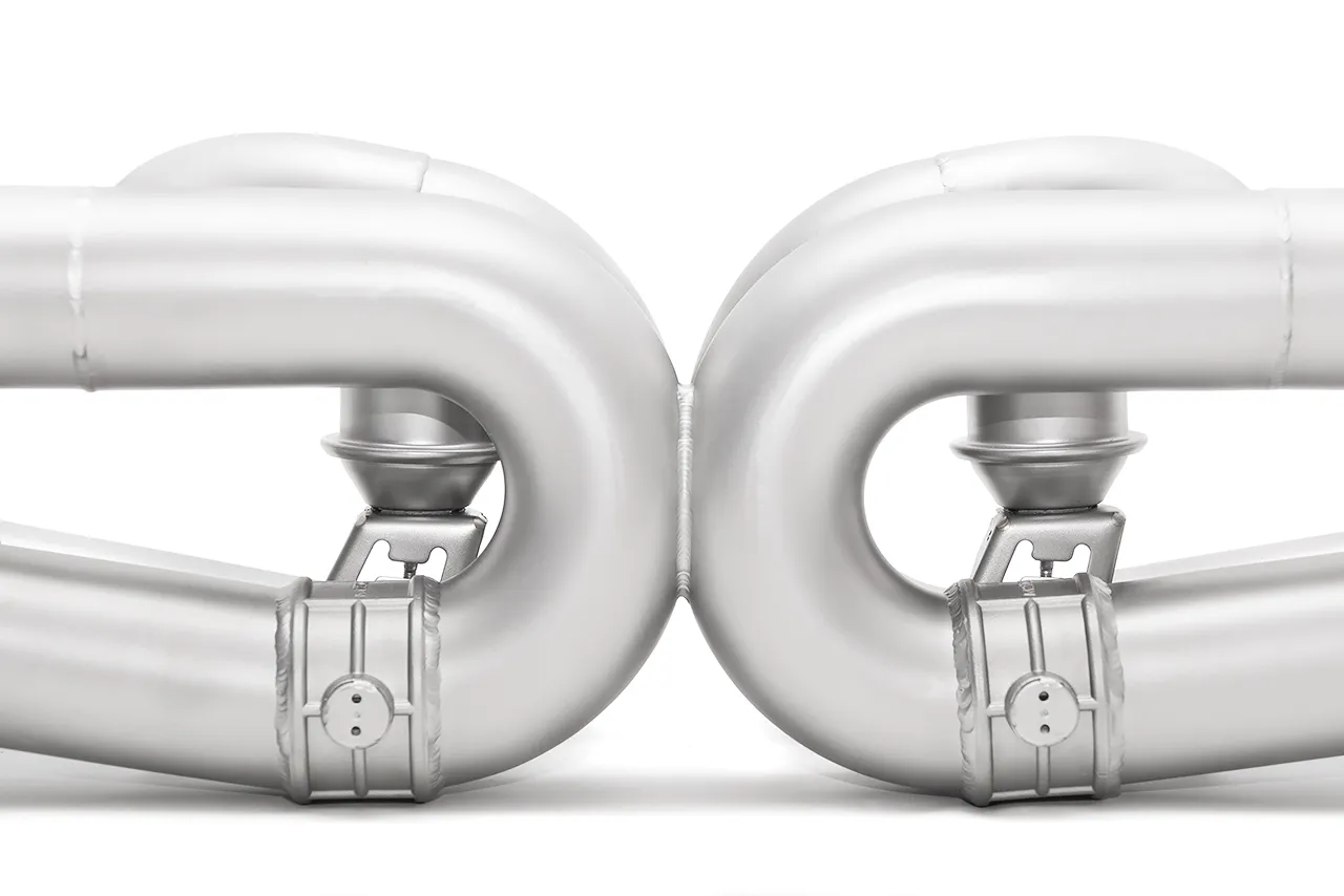 SOUND: The sound is aggressive – a primary benefit of our system is that with valves open there is straight, unrestricted path from the 2.5″ piping to the tips – but we’ve effectively massaged extra refinement into the system to match the premium experience that embodies all things Porsche. With valves both open and closed the X-pipe helps smooth the sound even further. All in all, we’re very happy with the results and we’re sure you will be too! With valves open, the free flowing nature of the system allows for a Cup car inspired sound – greater volume with a greater amount of crackles and burbles on deceleration. This system is for those who want added aggression at the press of a button. With valves closed the tone is very reasonable and refined, drone is kept to a minimum while still allowing for the flat six sound to be heard.