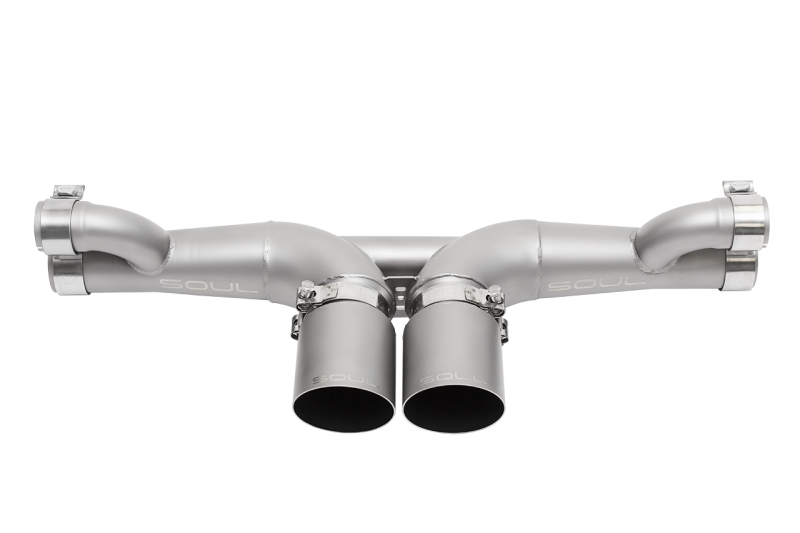 SOUL 06-11 Porsche 997 / 997.2 GT3 Center Muffler Bypass Exhaust – 3.5in Strght Cut Sig Satin Tips