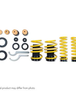 Our ST Adjustable Lowering Springs allow seamlessly adjustable lowering on vehicles with or without electronically adjustable dampers. They essentially turn any standard suspension into a coilover kit! Our new ST Adjustable Lowering Springs are now available for a variety of makes and models. The innovative ST threaded sleeve provides perfect fitment no matter if your car is equipped with standard shocks or an electronically adaptive damping system. With our ST Adjustable Lowering Springs, it’s easy to convert your stock suspension into a height adjustable system. Similar to coilover kits, the ST Adjustable Lowering Springs allow a seamless ride height adjustment for your vehicle in reasonable lowering ranges. We supply vehicle specific dust protection and spring components that are designed to give you the most out of your lowering. With ST Adjustable Lowering Springs you can expect a dynamic and sporty driving experience. At ST suspensions, your driving experience is the main focus when it comes to our products. That is why we select vehicle specific spring rates in each ST Adjustable Lowering Spring kit to perfectly match your original dampers. Our Adjustable Lowering Springs are made out of chrome silicon steel to guarantee a long lasting and quality driving experience. You will not only benefit from a lowered center of gravity and more direct handling but also improved steering and more stability during cornering. ST suspensions springs are constructed to OEM quality standards. They are made of high strength chrome silicon steel in a cold winding process then multi-tempered and have a final epoxy coating. This process helps resistance to different weather conditions. The high strength ST spring steel also ensures that our ST springs are block resistant and the springs do not sag.