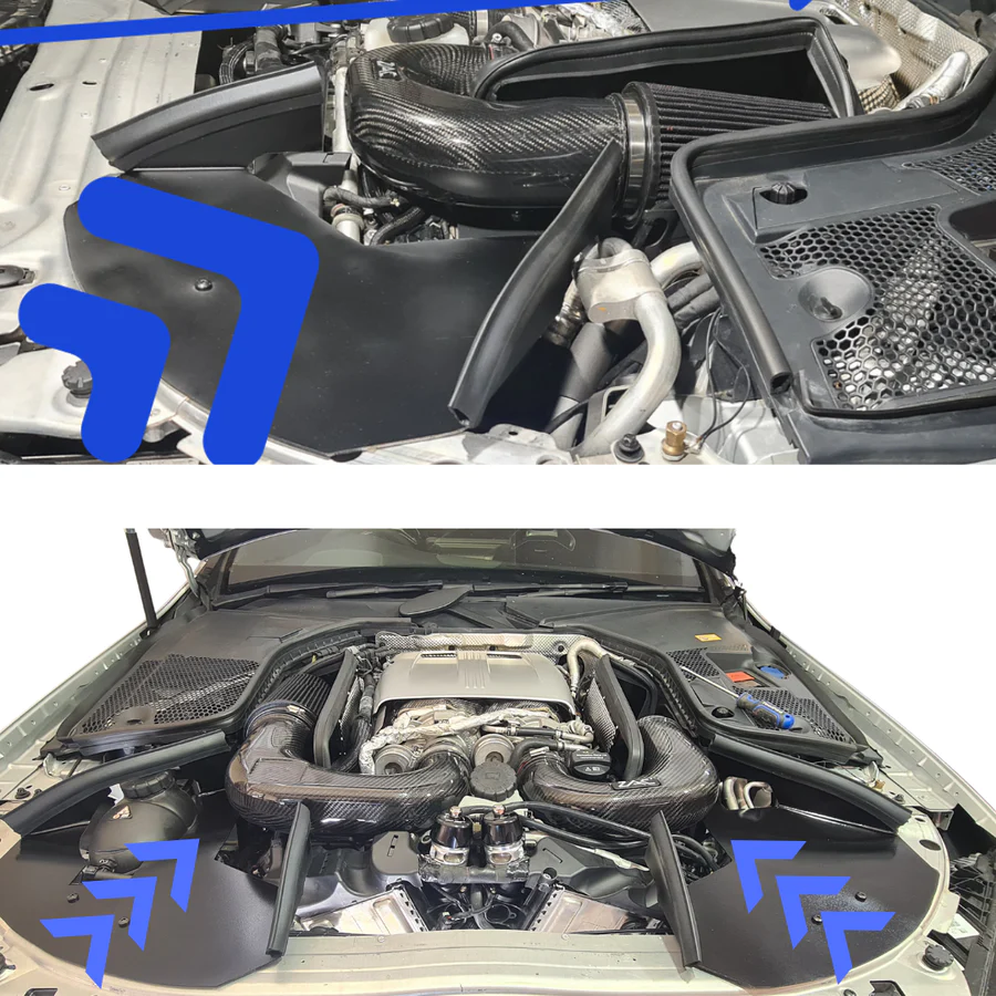 - Includes airboxes that seal against the hood