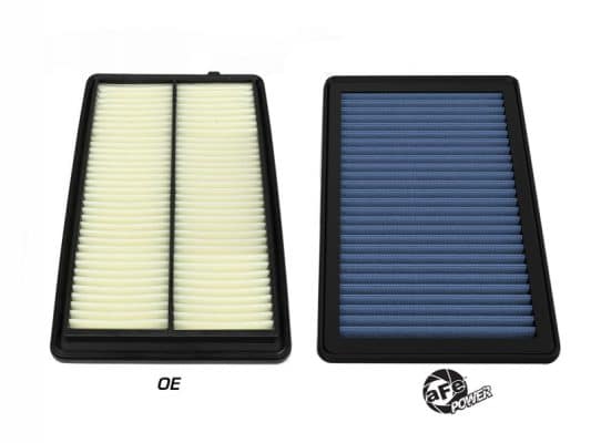 This filter features five layers of pre-oiled cotton gauze media to provide maximum performance. Its progressive layering allows the filter to flow at high levels even when dirty. This media is perfect for street and/or track use. Pro 5R filters are easily recharged with aFe’s POWER CLEANER and blue air filter oil. aFe POWER performance air filters use a rounded, evenly spaced pleat design which allows for more usable filter surface area, providing increased flow and greater dust holding capacity. This pliable sealing surface conforms to even the most uneven filter housing, making for a perfect filter fit and sealing surface every time. This design eliminates the use of gaskets or sealants and always goes back to its original form. All aFe POWER flat panel performance air filters are constructed with a full 360-degree polyurethane frame. Unlike other materials that degrade after repeated heat cycles in an engine bay, polyurethane maintains its original molded shape.