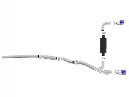 Power, sound and good looks is what this Takeda cat-back exhaust delivers. Power gains of up to +11 horsepower and +15 lbs. x ft. torque as shown on our in-house dyno. 3″- 2-1/2″ mandrel bent 304 stainless steel tubing and high flow transverse muffler offers maximum exhaust flow and incorporates a factory style exhaust valve to control the exhaust note. The valve utilizes the factory valve motor and factory performance modes. When closed, it directs the exhaust through the high flow muffler for a smooth, tuned exhaust note. When opened, the exhaust is allowed to bypass the muffler and unleash the sound and performance of your RS. The high flow, stainless steel muffler is finished in high temp, metallic black powder coating for long lasting good looks. Dual 4 1/2″ stainless steel exhaust tips with laser etched Takeda brand logo for a custom finish.
