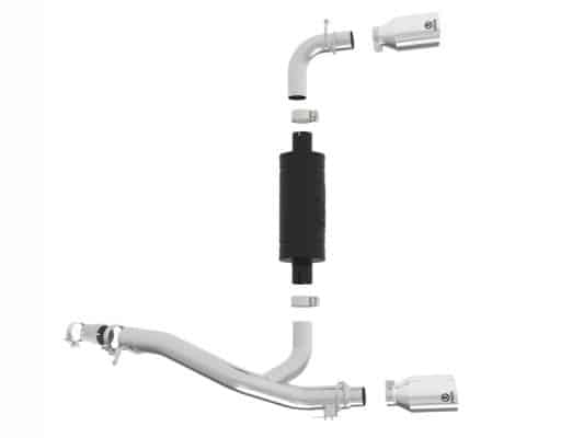 Power, sound and good looks is what this Takeda axle-back exhaust delivers. Power gains of up to +7 horsepower and +10 lbs. x ft. torque as shown on our in-house dyno. 3″- 2-1/2″ mandrel bent 304 stainless steel tubing and high flow transverse muffler offers maximum exhaust flow and incorporates a factory style exhaust valve to control the exhaust note. The valve utilizes the factory valve motor and factory performance modes. When closed, it directs the exhaust through the high flow muffler for a smooth, tuned exhaust note. When opened, the exhaust is allowed to bypass the muffler and unleash the sound and performance of your RS. The high flow, stainless steel muffler is finished in high temp, metallic black powder coating for long lasting good looks. Dual 4 1/2″ stainless steel exhaust tips with laser etched Takeda brand logo for a custom finish.